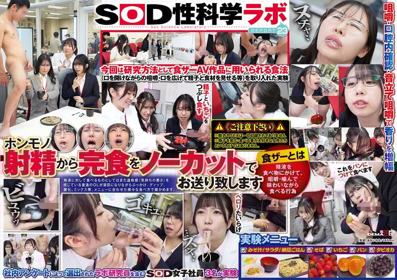 「ザーメンと最も相性の良い食べ物は何か?」をSOD女子社員3名が真面目に検証してみた結果 計46食の濃厚ホンモノ精子でお腹いっぱい 咀嚼でじっくり味わいごっくん飲み込むザ~汁マリアージュ食ザー実験 SOD性科学ラボ REPORT23